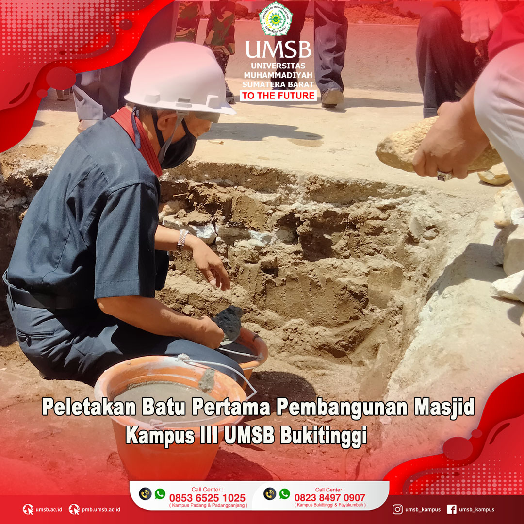 HUMAS UMSB- Setelah seminggu yang lalu UMSB melakukan ceremonial peletakan batu pertama pembangunan masjid di kampus IV UMSB Payakumbuh, Kamis 11 Februari 2021 dilaksanakan ceremonial serupa di kampus III UMSB Bukittinggi. Dua masjid yang dibangun UMSB di dua lokasi tersebut berasal dari donatur H. Hendri dan Hj. Asweti.