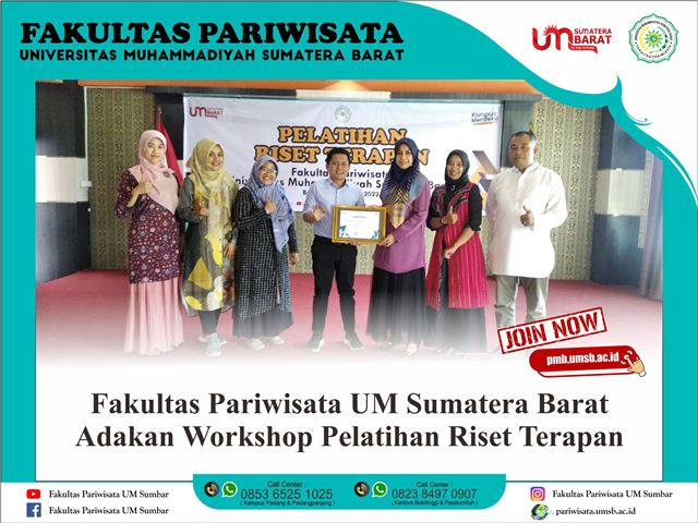 Humas Fakultas Pariwisata UM Sumatera Barat - Fakultas Pariwisata UM Sumatera Barat mengadakan workshop pelatihan riset terapan untuk seluruh dosen tetap Fakultas. Kegiatan ini dilaksanakan pada hari Jum’at 03 Juni 2022 bertempat di Convention Hall Kampus III UM Sumatera Barat.